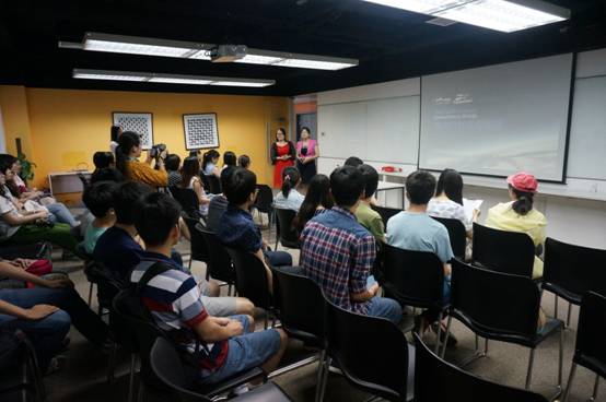 公共事务部高级研究经理乔玲玲给同学们做第三方评估讲座
