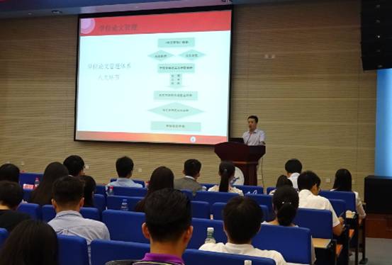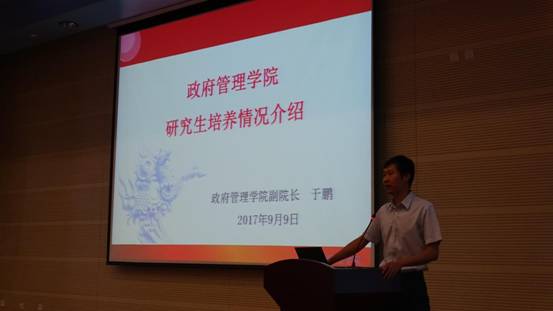 副院长于鹏向同学们系统地介绍了学院发展历程、师资队伍情况、研究生培养成果及特色等内容,使新生们对将要学习的专业有了更深刻的认识,对未来两年学习生活的努力方向有了清晰的把握。
