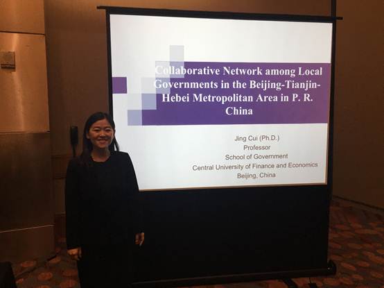 在区域协作治理分论坛上,崔晶教授宣读了题为“Collaborative Networkamong Local Governments in the Beijing-Tianjin-Hebei Metropolitan Area in P. R.China”的英文论文,向与会学者介绍了中国城市化进程中都市圈地方政府协作治理的最新发展。她认为,在中国都市圈地方政府协作治理中,京津冀都市圈地方政府协作网络的整体网络密度不高,但呈现出协作网络愈来愈紧密、辐射联系越来越多的演化趋势。演讲完毕后,崔晶教授就中国都市圈协作治理等问题与参会者进行了深入交流。