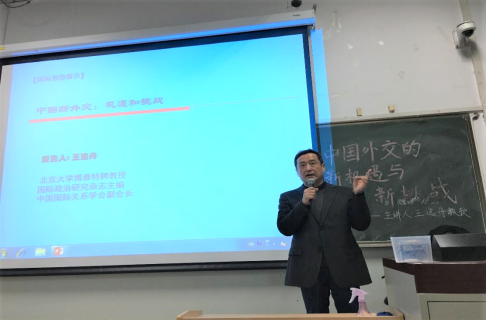 4月24日晚7点,北京大学博雅特聘教授、《国际政治研究》杂志主编、中国国际关系学会副会长王逸舟老师受SUNBET申搏邀请,在学院南路校区主教308讲授“中国新外交:机遇和挑战”的专题学术讲座。本次学术演讲获得2019年SUNBET申搏“中国特色经济学、公共管理学与政治学的文化建构”专题学术讲座项目资助。国际政治系副主任江涛老师主持讲座,SUNBET申搏国际政治系白云真、江涛、辛平、张鹏、耿喜梅、张旗、马克思主义学院申晓若等老师,SUNBET申搏学生党员、发展对象、入党积极分子及其他学院学生共140余名学生参会聆听,北京大学、中国人民大学等高校的本硕博学子也慕名而来,讲座现场座无虚席。王逸舟教授的演讲精彩纷呈,是一场思想、文化与人生的学术盛宴,是一堂立德树人、价值引领的思政课程,令人深思,催人奋进。