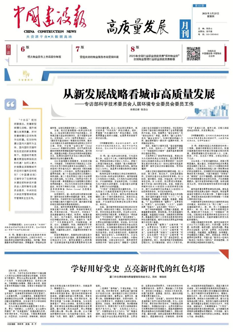 “十四五”规划纲要提出,完善新型城镇化战略,提升城镇化发展质量,并对完善城镇化空间布局作出部署。在加快构建以国内大循环为主体、国内国际双循环相互促进的新发展格局下,我国城市高质量发展面临哪些挑战和机遇?如何从更大的背景纵深理解城市的空间价值和空间规划?对此,申搏官网城市管理系主任王伟副教授接受了《中国建设报》记者采访。