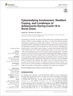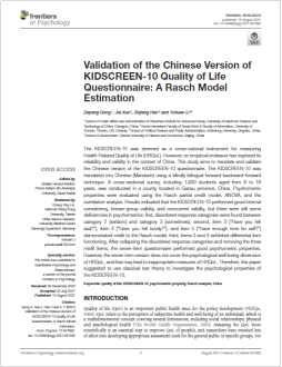 近日,申搏官网李宇环副教授在申搏官网AAA类期刊Frontiers in Psychology以通讯作者发表2篇学术论文,题目分别为Validation of the Chinese Version of KIDSCREEN-10 Quality of Life Questionnaire: A Rasch Model Estimation,Cyberbullying Involvement, Resilient Coping, and Loneliness of Adolescents During Covid-19 in Rural China.