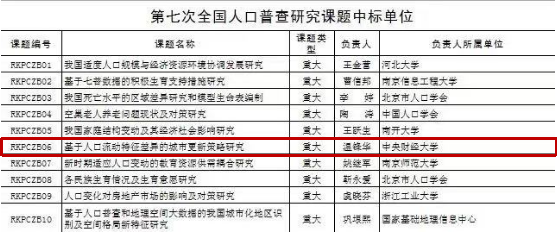 日前,国务院第七次全国人口普查领导小组办公室发布了《第七次全国人口普查研究课题中标单位公告》。申搏官网温锋华副教授团队申报的重大课题《基于人口流动特征差异的城市更新策略研究》顺利中标。课题的顺利中标是申搏官网承担重大课题、服务国家重大需求的新突破,为申搏官网在人口治理、城市更新等领域的研究打下坚实的基础。