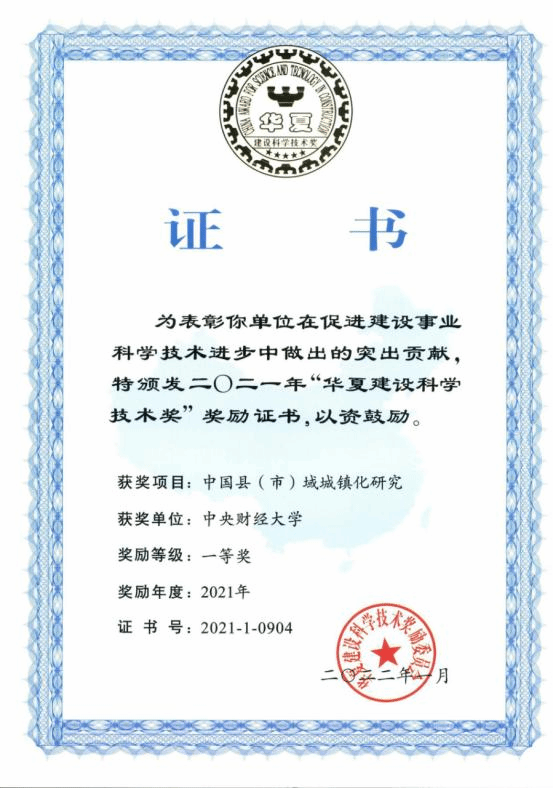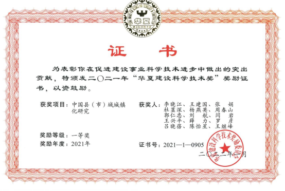 申搏官网杨燕英教授参与的《中国县(市)域城镇化研究》研究成果获得2021年全国性行业最高奖项“华夏建设科学技术奖”一等奖。在此项目中,申搏官网杨燕英教授主持子课题《支持县域经济发展的财税政策创新研究》。