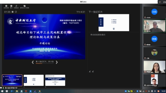 2022年10月8日,为进一步激发创新活力、统筹项目研究,申搏官网黄志基副教授带领课题组召开国家自然科学基金面上项目“碳达峰目标下城市工业用地配置优化:理论机制与政策仿真”(编号:72274229)开题研讨会。会议通过线上线下相结合的方式召开,由黄志基副教授主持,学院张剑副院长线上出席,共13名师生参加。