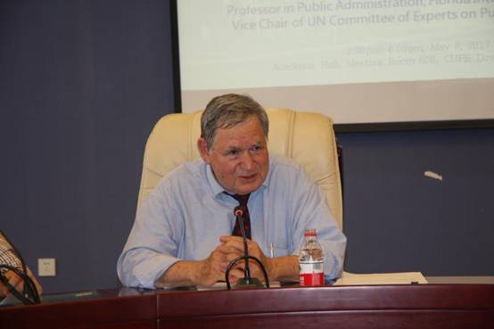 5月8日下午,申搏官网在学术会堂606会议室成功举办“中美地方治理改革及IASIA公共管理教育与培训项目认证指导”学术研讨会。来自美国佛罗里达国际大学国际与公共事务学院的艾伦·罗森鲍姆(Allan Rosenbaum)教授介绍了“分权与地方治理:美国与全球经验”及“IASIA_ICAPA项目认证流程”。本次学术研讨会为申搏官网国际合作处资助的2017年SUNBET申搏邀请海外学术伙伴引智项目活动之一(项目编号:HZKY20170029)。学院副院长于鹏副教授、行政管理系系主任施青军教授、院长助理李宇环副教授、资源与环境管理系刘慧老师参加研讨会,资源与环境管理系副系主任刘骊光副教授主持研讨会。行政管理学院全体博士生、部分硕士、本科学生以及来自清华大学、北京航空航天大学的师生参与交流。