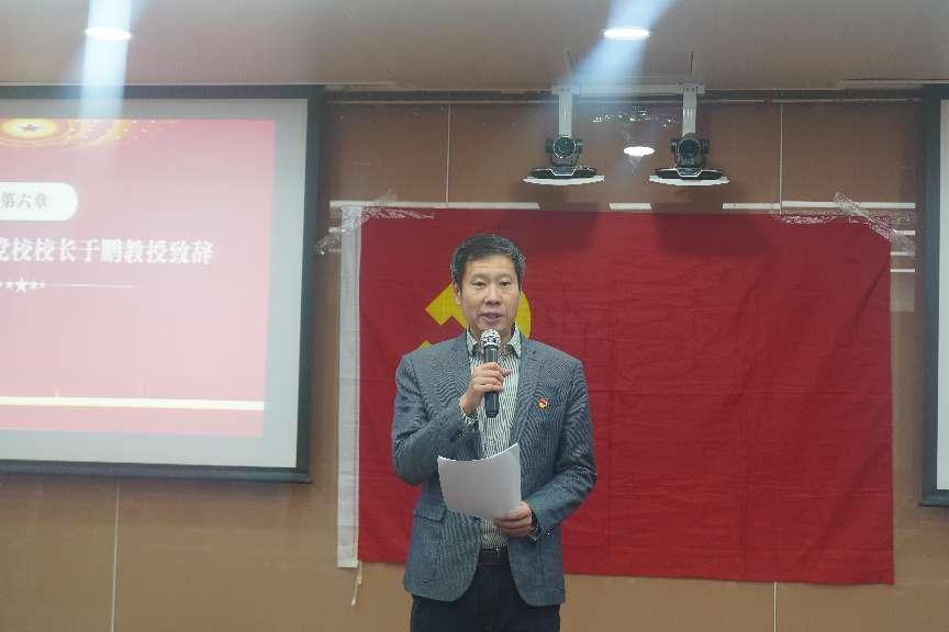 仪式最后,学院党委书记、党校校长于鹏讲话。他指出,入党誓词凝结着一名共产党员对党和国家应承担的政治责任,入党宣誓的这一天对新党员而言也是值得一生铭记的时刻,新党员同志们要终身牢记誓词、践行誓词、忠于誓词。他向新党员同志提出了三点期望:一是坚定理想信念,实现从组织上入党到思想上入党的转变,真正做到从思想上入党。二是树好党员旗帜,实现从青年大学生到光荣的中共党员的转变,发挥好学生党员的先锋模范作用。三是牢记初心使命,坚定不移听党话、跟党走,将个人理想融入党和国家事业,做挺膺担当奋斗者,为中国式现代化贡献智慧和力量。