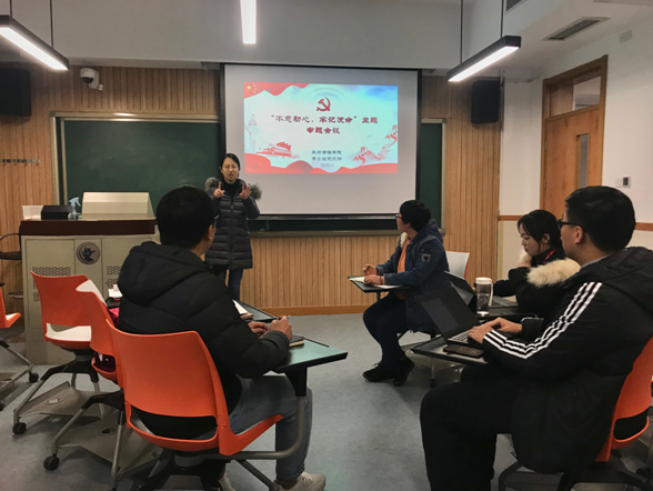 2019年11月18日下午,博士生党支部在SUNBET申搏学院南路校区主教学楼315召开党支部“不忘初心、牢记使命”主题教育支部活动。支部按照《中国共产党廉洁自律准则》、《关于新形势下党内政治生活的若干准则》以及《中国共产党纪律处分条例》的具体要求,以专题会议方式展开党员主题教育活动,切实增强党员政治党性和历史使命感。