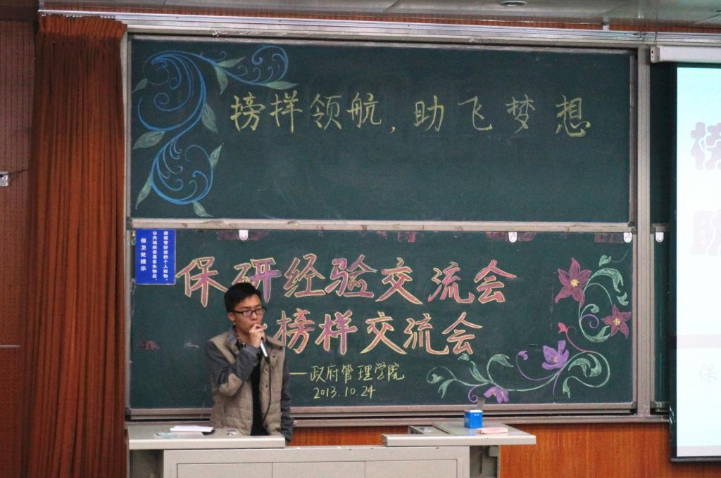 其中,作为特邀嘉宾的来自商学院支教保研的尹杨松同学首先发言,他以敏锐的视角、负责的态度向大家详细对比了支教保研与优干保研的优劣势。同时,他依据自身经验详细阐述了支教保研的原因、过程及准备工作,使得在场同学受益匪浅。
