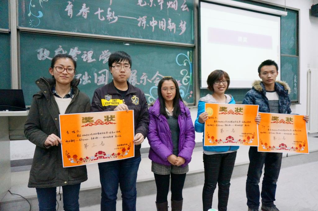 本次展示会以“舞动韶华--览京华烟云,青春七彩--探中国新梦”为主题,分“红橙黄绿青蓝紫”七个小组进行展示。展示形式丰富多彩,有视频、ppt、情景剧等,充分展现出各组成员的努力与创新。十橙华绎队采访了“城市美容师”--清洁工人的中国梦,用小品展现出清洁工人的温情;蓝路虎队向着梦想出发,以一段对女巡警的电话录音深深打动在场每个人的心;来自“中央政府红军团”的红色别动队带着追梦赤子心,踏遍北京,开启寻梦之旅;青队专注青春,专注梦想,引发大家对青春的思考,展现出当代大学生的青春与活力;小黄人队全体成员深情朗诵,执着对梦想的憧憬,追求无悔的青春;紫队的展示神秘而精彩,以一首嵌入全体组员姓名的诗歌赢得现场热烈的掌声;还有找寻绿色足迹的“绿行家”,他们处处寻绿,寻访中国绿色的未来。七支队伍的展示可谓精彩纷呈,让评比竞争变得格外激烈。