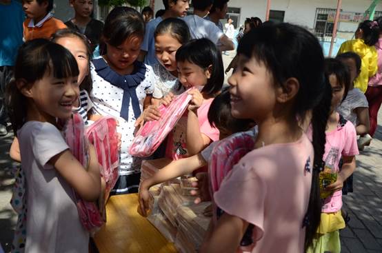 下午2时左右,一行人来到振华小学开始筹备:摆放桌椅、悬挂横幅,志愿者们被孩子们团团围住,与他们亲切交流。在捐赠现场,孩子们睁大眼睛,目不转睛地看着崭新的书包、多样的文具,脸上洋溢着喜悦的笑容。分发环节,孩子们按顺序拿到文具和书包,相互交谈着、比较着,“我的最好最漂亮”,“是我的比较好看”,校园到处充满欢声笑语。为了记录这欢乐祥和、富有意义的瞬间,一行人与振华小学校长、老师及孩子们共同合影留念。