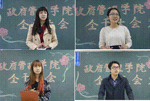 会议的开始,学生会主席团的每个成员都认真梳理了上学期的学生会工作,发言简明扼要,切中要点,让大家更加具体和完备的了解了每个部门的工作职能。团总支副书记郑舒文对上学期的学生会工作进行了总结,她特别表扬了学生会成员们的团结意识,并希望大家继续发扬这种团结合作精神。学生会主席李欣媚对学生会全体干部提出了希望,希望学生会每个成员都树立“主人翁、责任、创新”三个意识,李欣媚同时指出各个部门应该加强沟通、协调一致,更好地发挥学生会为学生群体服务的职能。学生会副主席朱玉彤主要对青协、礼宾队和主持团的职能做了进一步的阐释,并希望这三个部门能够积极地融进学生会的内部工作中。之后,团总支副书记果航宇着重强调了“梳理分类、抓重点”的工作方法以及学生干部应该具备的“谦虚、友好、团结”的工作态度,他的发言让大家耳目一新,对大家下一步的工作有极大的启发。
