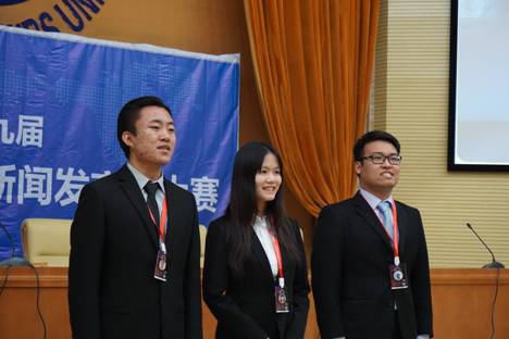 申搏官网13级刘彤逸、彭芮,14级杨崇祺荣获第九届全国高校模拟新闻发言人大赛二等奖