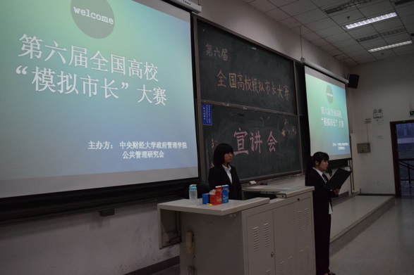 之后,主持人请上届校际赛冠军天空之城队队长冯羽同学上台为大家介绍经验,冯队长在柴老师介绍的基础上就社会调研和台上表达技巧做了进一步说明,强调了调研的切实可行性以及寻找调研机构的技巧,并对队长的选择进行经验介绍。到此宣讲会圆满结束,会后公共管理研究会工作人员与现场咨询的同学展开了热烈的沟通,解答同学对比赛的疑惑,并组织参赛同学们加入了模拟市长网络交流群以便随时进行沟通。