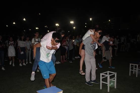 按照规则,16级新生同学共分为“你”、“我”、“有”、“缘”、“相”、“聚”、“在”、“中”、“财”、“政”、“管”十一个小组,在班级助理、“芮+”导师和15级同学带领下进行游戏和互动。在小组活动环节,组内成员在领到各自名牌后首先进行了自我介绍。紧接着的传递记名游戏使同学之间更加熟悉,现场气氛也更加融洽。而后进行的“一块钱两块钱”、“报数”、“虎克船长”等游戏将活动推向高潮。输了游戏的同学接受各种各样的惩罚,唱歌、跳舞、真心话、大冒险…在亲密的互动和交流中,同学之间的距离感不复存在,他们一同欢笑,其乐融融。小组活动之后,十一个队伍又进行了“你画我猜”、“瞎子背瘸子”的游戏比赛,队员们相互合作,都想努力为自己的队伍赢得奖励。夜幕悄然降临,此次破冰活动也在一片欢声笑语中结束。此刻,输赢已不那么重要,而同学们能够在游戏中互相熟识与了解才是这次活动的真正意义。