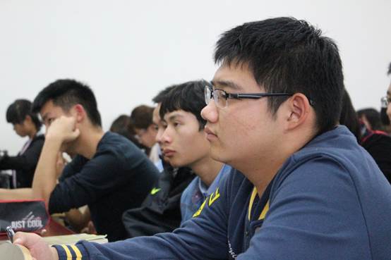 首先,白老师便激励同学,要“个人的修养”。他提出了一个观点:因为人生境界的高低首先取决于一个人的立志,所以我们要以国家与人民的诉求为出发点来进行学习与实践。白老师要求同学们要严于律己,坚定心志,努力上下求索,提高自己的学习境界。他还认为同学们不应仅仅学习专业知识,还要掌握必要的生活技能并学会如何合理安排时间,因为这也是一种磨砺与锻炼。