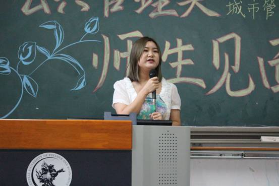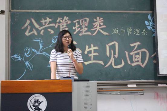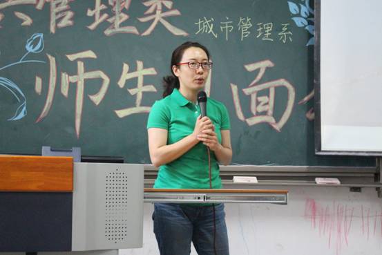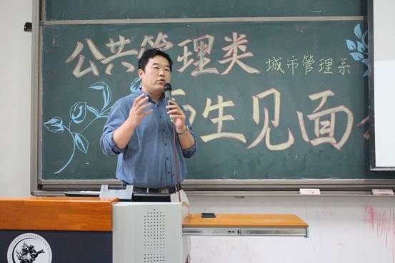 接下来是邢华老师用四个关键词来讲出他对同学们的成长期望——情怀、务实、精彩、大有可为。情怀——邢老师指出公共管理专业考虑的是公共利益,致力于研究通过公共政策的制定和公共事业的管理使人们生活得更好。“正气浩然,上善若水”的院训要求政管学子具有高度的社会责任感和社会使命感。在城市化浪潮中,只有具备了情怀,城市研究才能做得更好。务实——城市面临的问题十分具体,例如人口拥堵问题、交通拥堵现状以及与人们的生活息息相关的城市规划等。如何使秩序更加井然有序,则需要我们学习城市管理方面的知识,更好地理解城市、规划城市、管理城市。邢老师讲解道,城市管理专业的培养方案不仅教给学生众多的理论和技能,还培养了他们的全球视野、技术视野、财经视野。经济学、管理学、规划学等学科的学习,将为学生们的未来打下了十分深厚的基础。如今,城市管理专业的教师团队精干,教授、副教授人数众多,且都毕业于名校,知识结构、知识储备均是一流,相信会给予同学们足够专业的指导。精彩——面对同学们对专业学习的疑惑,邢老师认为城市管理专业的学习并不枯燥,反而生动有趣,模拟市长大赛、城市营销大赛都精彩万分。课程的设置更加关注于培养学生全方面素质,学生可以亲自动手设计城市规划,每学期都跟随师长进行社会实践,亲自走访调查。大有可为——邢老师向同学们介绍了城市管理专业的发展现状。目前学院设立了城市管理专业的硕士、博士点,同学们选择这个专业,未来发展空间大,无论是考研保研、出国、就业,都将有一个很好的发展。