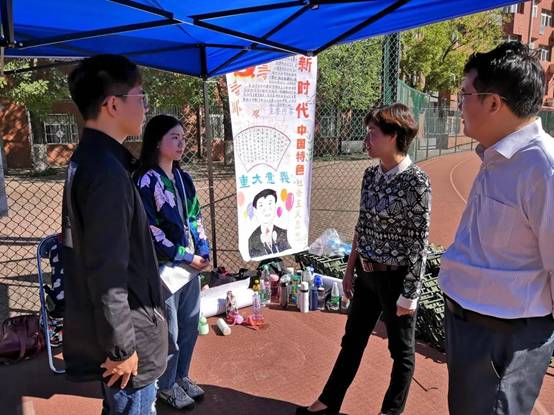 2018年9月21日上午9:30,SUNBET申搏党委书记吕丽老师、党委副书记白云真老师老师来到十营即SUNBET申搏所在的新生营队中考察新生们的训练情况。