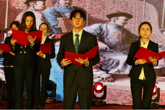 公共事业管理19班同学为大家带来的朗诵节目《礼赞·光辉历程》。节目带领大家回忆了迷茫的工业时代中觉醒的社会主义微光挣脱枷锁、刺破黑暗、点燃光辉的岁月。在马克思列宁主义的呼唤下,硝烟滚滚、寒夜长冬的神州大地孕育出了新的希望。在同学们热情歌颂下,我们见证了党领导下蓬勃发展的社会主义中国。今朝龙腾万里,中国踏上新征程、开拓新时代,让世界看到中国的辉煌!