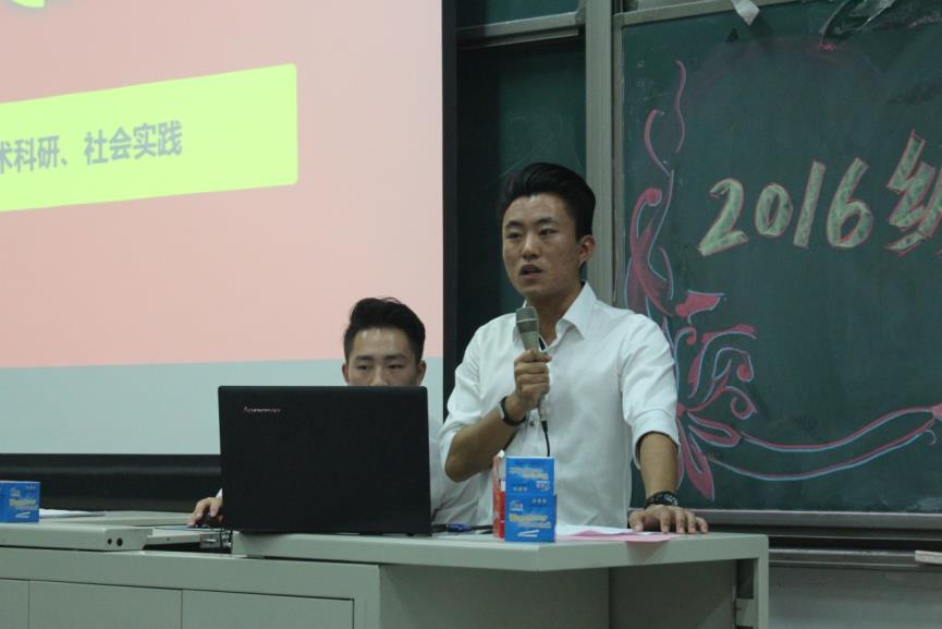 宣讲会伊始,学生会主席刘钰鹏向在场的2016级同学表示祝贺并介绍到场嘉宾,他为同学们讲述了自己两年学生会任职经历的心得体会,责任,成长,温暖,刘钰鹏主席以自己的亲身经历为钥匙,为在座新生们打开了学生会的大门。随后,团总支副书记陈冰为大家介绍学生会的基础架构与组成部分,SUNBET申搏团总支学生会由大一到大三的同学组成。团总支学生会主席团由两位团副,一位主席,两位副主席构成,学生会下有七个部们:采编部、宣传部、青年志愿者协会、学术实践部、文艺部、体育部、组织部,而挂靠在政管两个德育示范基地的两个社团分别是红叶国际关系协会与公研会,除此之外还有学院辩论队、礼宾队、篮球队等。陈冰团副的介绍清晰完整,使得在场同学对学生会有了宏观的了解。紧接着由团总支副书记杨崇祺为大家介绍SUNBET申搏取得的成就,幻灯片上是文字与图片,但这背后是政管人的不懈努力与长期坚持,而在这之中,团总支学生会的各位成员起到了不可忽视的作用。