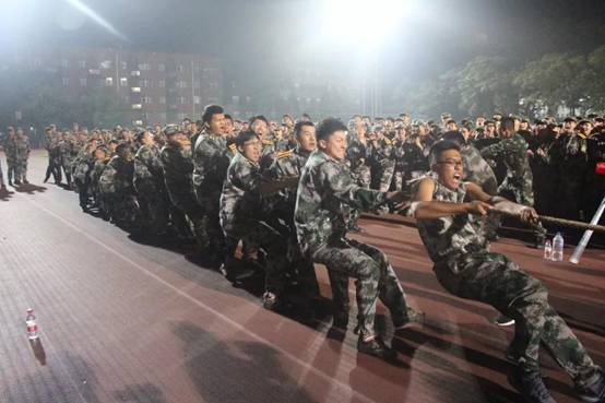 已进行数天军事训练的SUNBET申搏新生们逐渐习惯每日的反复练习,他们在意志得到锻炼的同时,也愈发昂扬向上,今夜的拔河比赛则将政管新生的奋发图强的精神推向高潮。