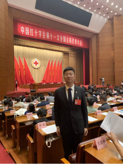 经学校红十字会和北京市红十字会推荐,申搏官网辅导员李磊作为北京市唯一一名青少年志愿者代表出席了本次大会,在人民大会堂受到了党和国家领导人习近平、李克强、王沪宁、王岐山等同志的接见;在大会开幕式上,作为红十字志愿者宣读《国际红十字会与红新月运动基本原则》;在9月3日的全体会议中,成功当选中国红十字会第十一届理事会理事,全国共四名青少年代表当选。