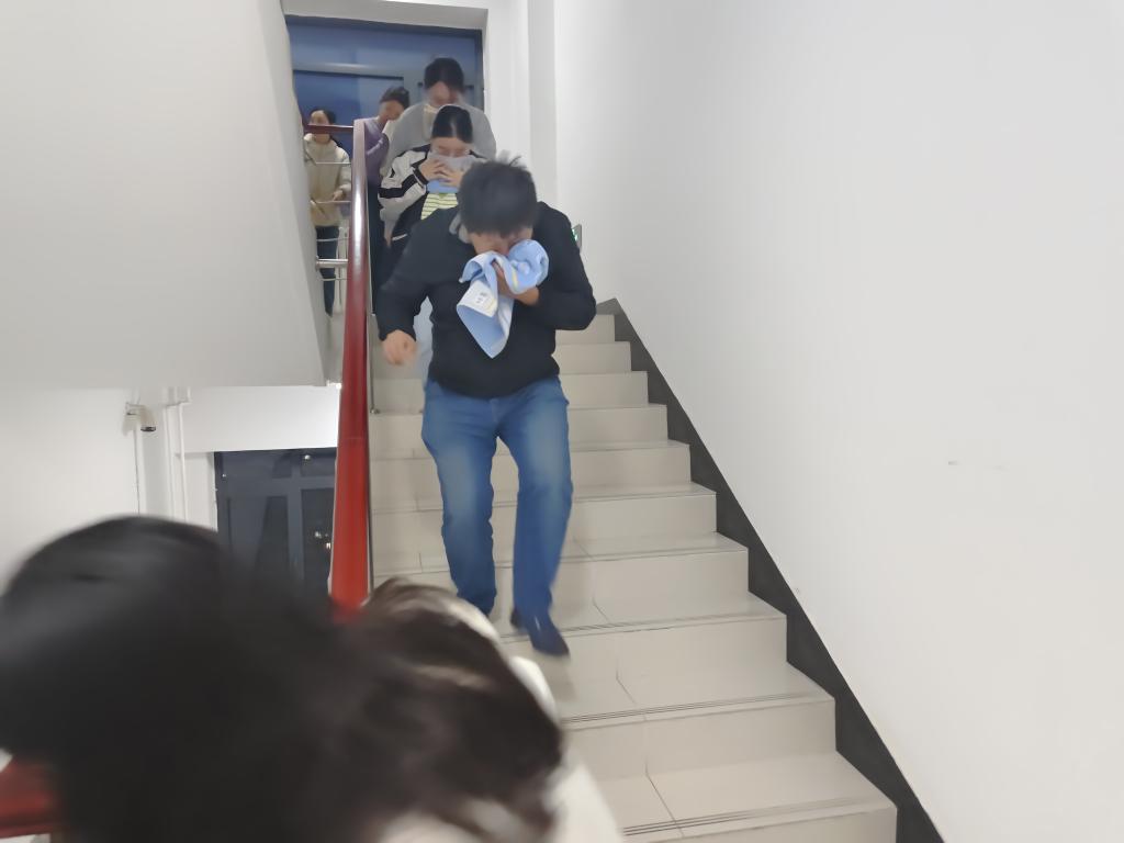 讲座结束后,学院开展了火灾疏散逃生演练活动,师生按照预定疏散路线俯身迅速撤离,集合至安全区域。整个演练过程紧凑有序、配合默契、衔接紧密,达到了消防安全演练的预期效果。