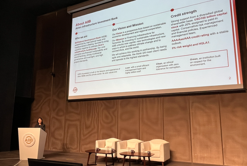 申搏官网校友、现就任于亚投行政策战略与预算局的政策战略官陈晓朦女士首先指出亚投行与常规的商业银行不同,亚投行专注于“发展”,并不像商业银行一样追求尽可能高的利润;同时,与其他多边开发银行不同,亚投行专注于亚洲发展,致力于推进绿色、科技赋能的基础设施建设。陈晓朦女士也对投资项目类型、项目运行作了细致的介绍。