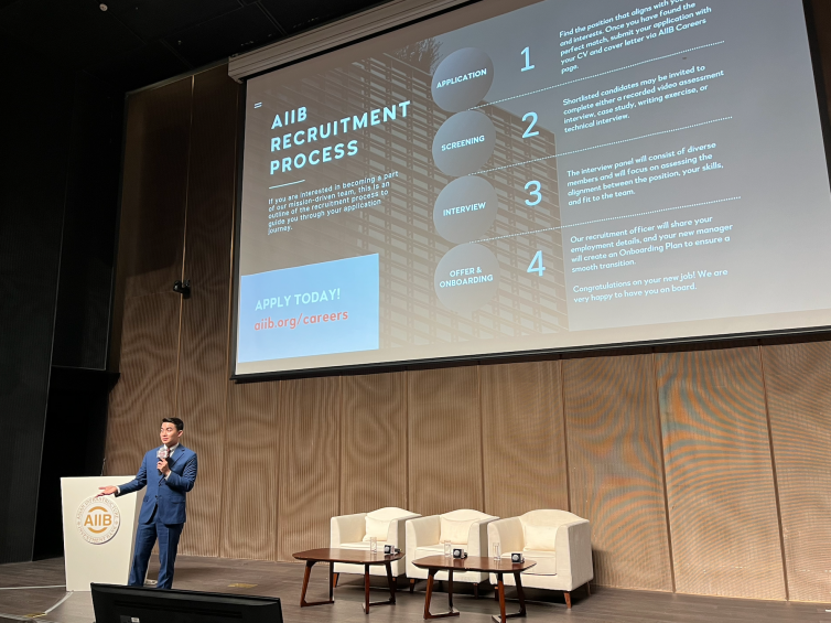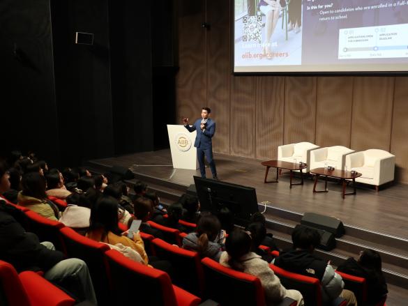 亚投行高级人力资源官布莱恩·卡洛·伊波利托(Brian Carlo Hipolito)为参访师生介绍了亚投行的职业发展项目以及组织文化,就如何申请亚投行职位、如何规划职业路径与学生进行了深入的交流。布莱恩欢迎申搏官网优秀师生申请参与亚投行相关职业发展项目。