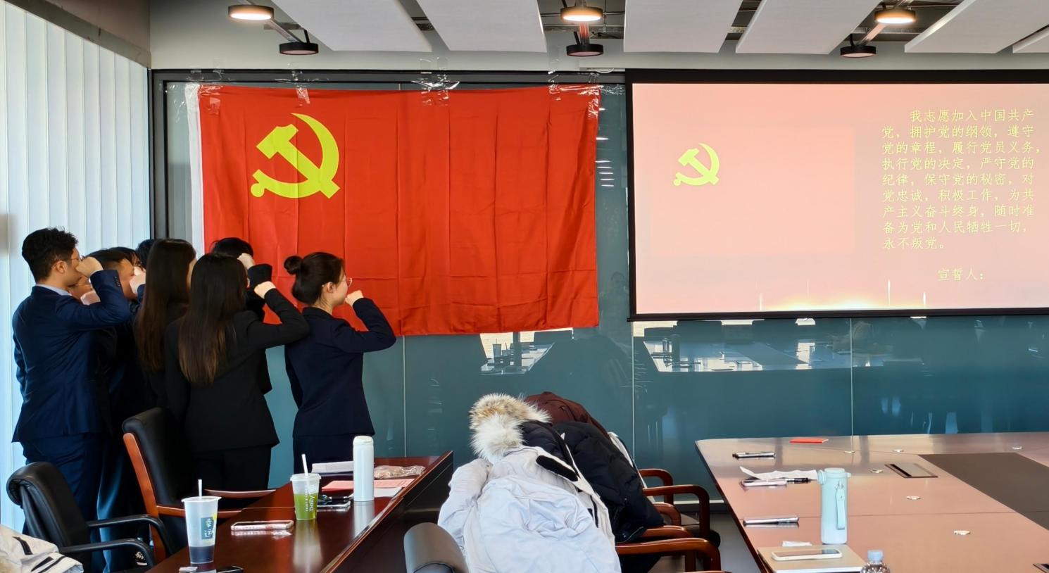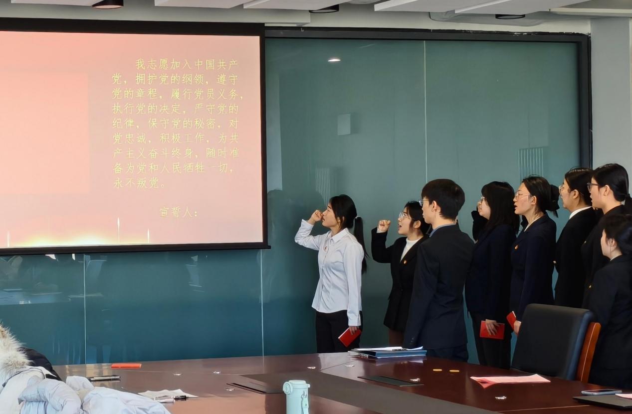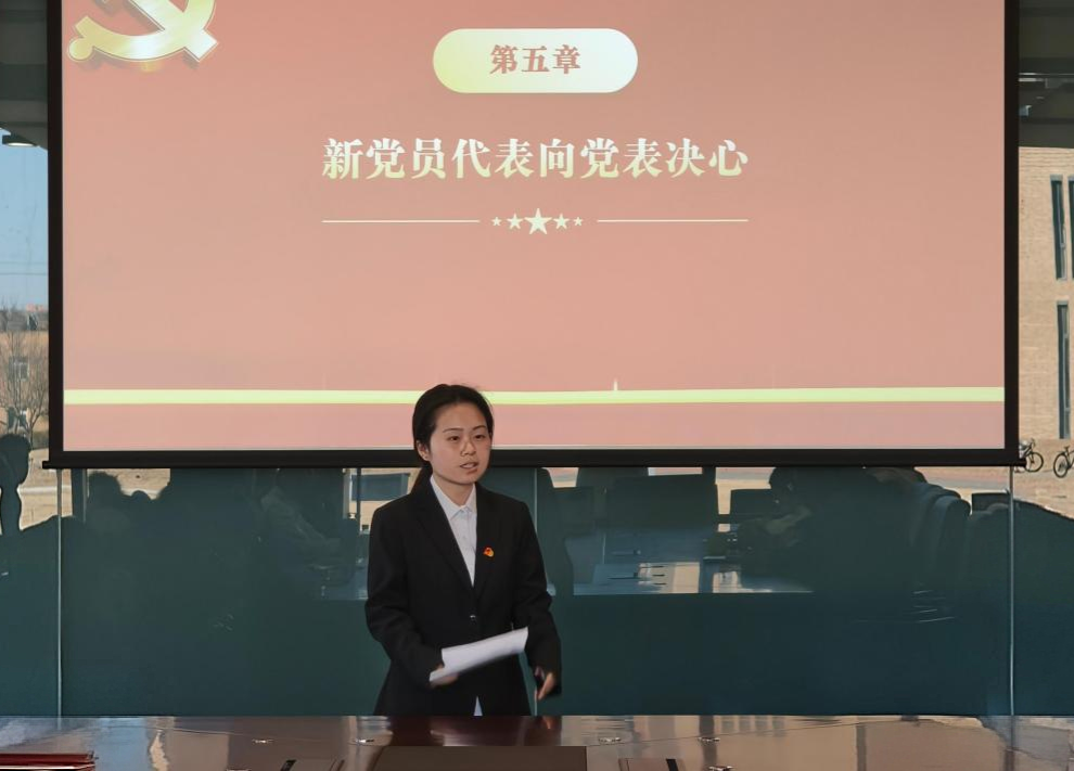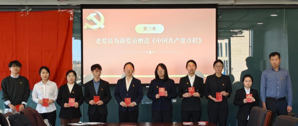 入党宣誓仪式在激昂的《国际歌》中拉开帷幕,深刻洗礼了在场每一位同志的心灵,唤起对革命理想与奋斗初心的共鸣。随后,于鹏、李楠与党支部书记杜辉煌、官惠敏共同向新党员赠送《中国共产党章程》。鲜红的党章传递着党组织的殷切期望与厚重嘱托。新党员们庄严接过党章,表示将自觉尊崇党章、学习党章、践行党章,将其作为根本行为规范。