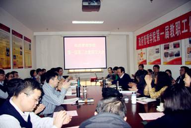 2014年2月26日,SUNBET申搏第一届第三次教职工大会在学院南路校区中财大厦932会议室召开,学院全体教职工参加了会议,会议由学院党总支书记吕丽老师主持。