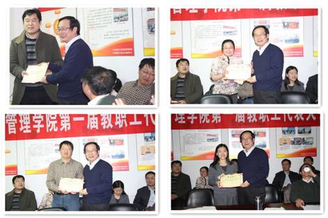 第三项议程,学院向在2013年度为学院发展奉献突出的教职工颁发“若水奖”。“若水奖”是用以表彰在学院“三讲一提高”活动中涌现出的奉献模范教师而设立的,名称源自“正气浩然,上善若水”的院训。王伟、刘燕、刘骊光、崔晶四位老师荣获“若水奖”,张相林、张爽、耿云、温锋华四位老师荣获“若水提名奖”。赵景华院长为获奖者颁发了证书和奖金,获奖教师也与大家真诚地分享了获奖感受与工作感悟。