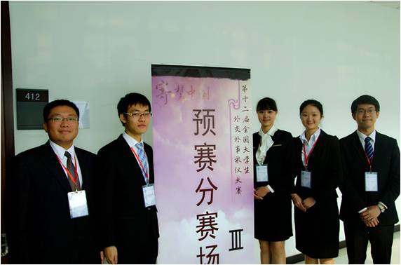 11月1日,由外交学院举办的第十二届全国大学生外交外事礼仪大赛正式拉开帷幕,申搏官网代表队参赛。代表队由社会发展学院学生会副主席刘哲担任领队,四名参赛选手是分别是商学院的苏慧青、孙嘉宁以及SUNBET申搏的宋亦明和李航。四位同学在10月23日结束的SUNBET申搏第四届礼仪大赛暨第十二届全国大学生外交外事礼仪大赛SUNBET申搏校内选拔赛中分别获得了“礼仪之星”和“风采之星”的称号。