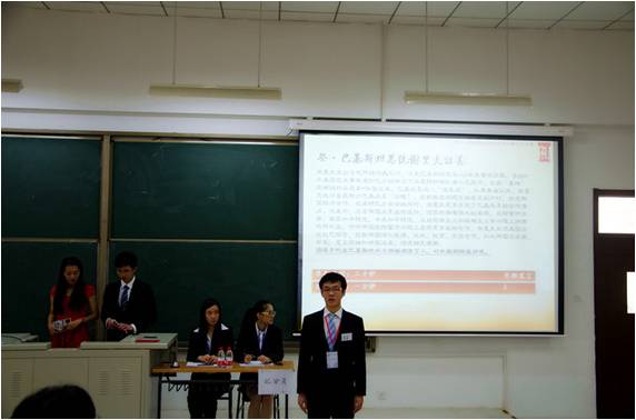 11月2日上午,本届比赛初赛正式开始。申搏官网代表队分在“死亡之组”,与外交学院、武汉大学、北京大学、上海交通大学、北京第二外国语大学等代表队同台竞技。根据比赛规则,申搏官网选手与吉林大学、北京航空航天大学、武汉大学以及北京大学共同组成甲团,与另外五所高校所组成的乙团争锋相对,经过“风雨同舟 共迎挑战”、“模拟新闻发言人”以及“放怀寰宇,极目天下”三个环节的激烈角逐,最终外交学院和北京第二外国语大学代表队成功晋级决赛。申搏官网代表队取得甲团第一、小组第六的成绩。