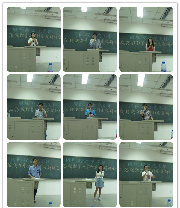 9月11日13点30分,SUNBET申搏国际政治党支部在沙河校区6号学院楼106教室召开群众路线教育及学科建设研讨会。国际政治专业教师江涛、白云真、张占顺、耿喜梅、辛平、张鹏到场听取11、12级同学关于学院、学科建设方面的看法和建议。