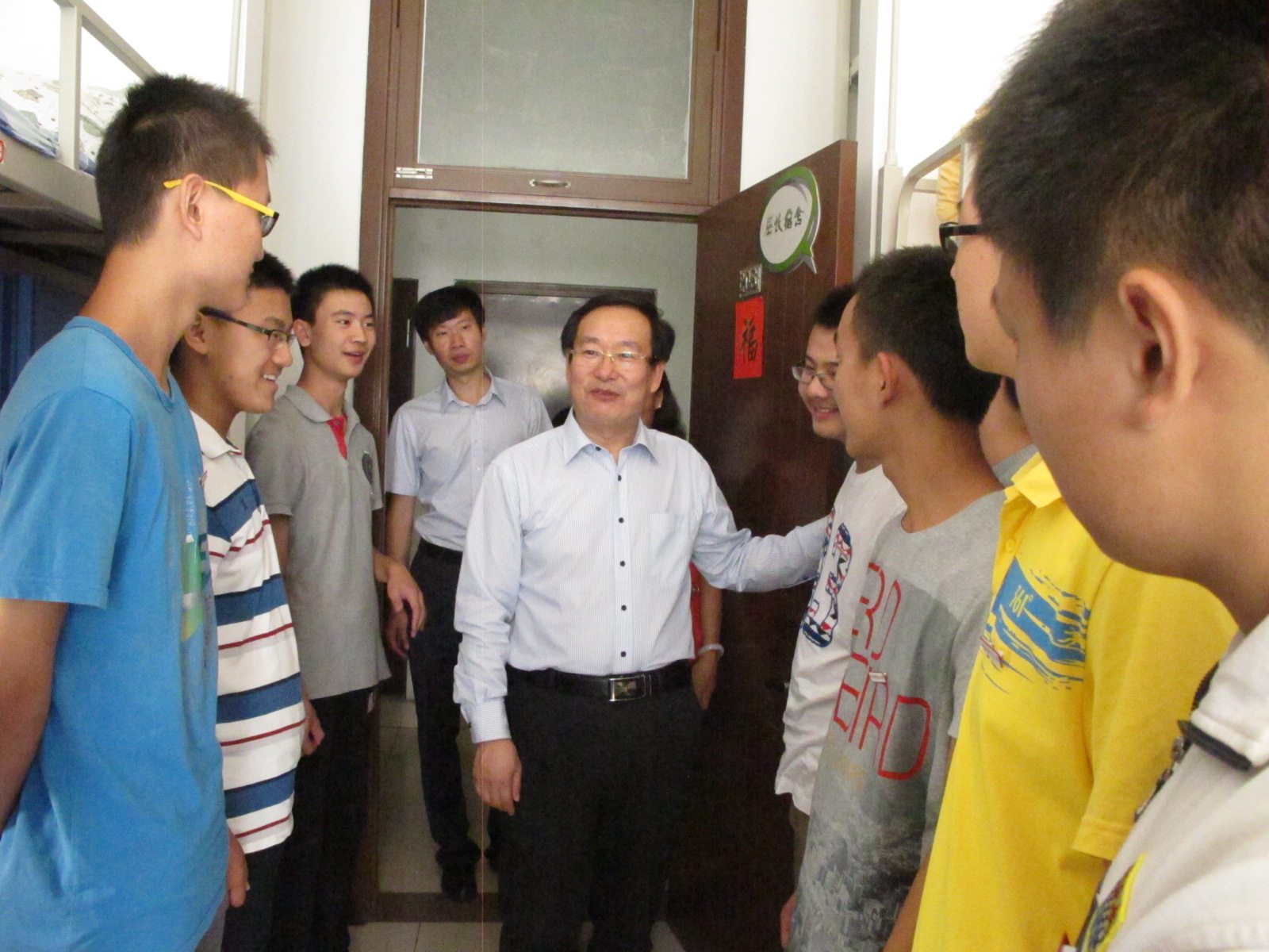 领导首先去到宿舍1号楼227寝室,亲切地询问大家将近一周来的适应情况。看到领导亲自来访,同学们都表现出积极、高昂的兴致,用自信的声音回应领导。接着,在与同学的交流中,赵丽芬副校长提到了大家关心的学习问题,指出大学期间仍要以学习为重,做好考取研究生或保研的准备工作。同学们频频点头,也立志大学期间取得一番成绩。在另一件329寝室,校长、院长关切地询问大家各自的家乡,大家五湖四海相聚中财、相聚政管,难能可贵。几位土家族、藏族等少数民族的同学也请领导放心,表示会努力学习、努力工作,与大家打成一片。男生那边,政管部分帅气阳光的小伙子们在宿舍2号楼208寝室热烈欢迎院长一行人前来。院长赵景华热情地向大家问好,看到新一级年轻人为SUNBET申搏注入新鲜血液,他激动地拍着新生的肩,诚挚希望大家尽快适应大学生活,开启未来新篇章。他还详细地询问了关于军训相关事宜的准备情况,大家都表示将不怕苦不怕累,用军人的作风激励自己前进。