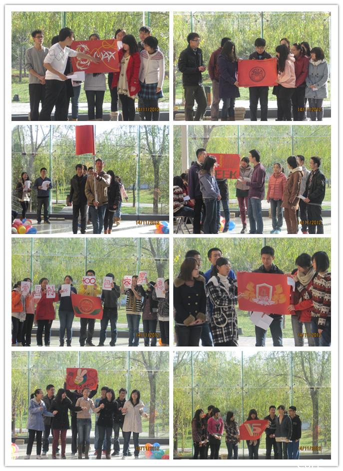 在一段活跃气氛的兔子热场舞之后,素质拓展活动正式开始。首先是团队建设展示环节:八支队伍逐次登场介绍队名、队歌、队旗。八组年轻人运用各自特色的方式传达出团队精神:第一组“SEEK”象征速度、高效、热情与知识;第二组“2爱无穷”象征积极有爱的生活态度;第三组“Max”欲将势气最大化;第四组“小四班”凸显温暖与和谐;第五组“V5”彰显霸气一面;第六组“Genius foodies”根据美食线索定位为“天才吃货队”;第七组“HOLD”旨在表现厚德这一北京精神;第八组“正无穷”带给人以无穷正能量。于此同时,象征青春颜色的多彩队旗也掀开真面目,经过改编的动听队歌也让大家一饱耳福。这个环节中,创意的源泉涌流,欢声与掌声不断。