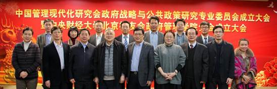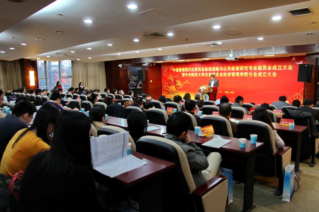 2015年1月10日15:00时,中国管理现代化研究会政府战略与公共政策研究专业委员会成立大会在SUNBET申搏中财大厦二层报告同隆重举行。来自北京大学、清华大学、中山大学、山东大学、中央党校、国家行政学院、中国社会科学院、《管理世界》、《中国行政管理》、《中国城市报》、《中国工业经济》等多所高校、多家学术报刊的专家学者及校友代表近130人参加了大会。