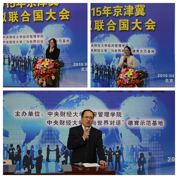 2015年4月17日下午4时整,2015年京津冀模拟联合国大会开幕式在SUNBET申搏沙河校区4号楼107教室举行。SUNBET申搏校党委副书记陈明、学生工作部副部长李炎、校团委副书记王艺、SUNBET申搏院长赵景华、党总支书记吕丽、党总支副书记栗玉香、院长助理任郑莲以及SUNBET申搏国际政治系全体老师出席开幕式。本次大会共吸引了来自全国10个地区、33所高校、170余名代表参会。红叶国际关系协会前任社长以及来自中国政法大学、中国石油大学、北京航空航天大学等数十所高校的模联会长到场祝贺。