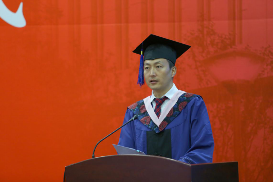 在热烈的掌声中,赵景华院长致辞。赵院长首先对同学们的顺利毕业致以热烈的祝贺,对支持同学们成长的老师和亲友表达感谢。赵院长指出,2016年具有特殊意义,于毕业生而言是开启征程的一年,于学院而言是十岁生日。学院经过十年的跨越式发展,已经形成了更加合理的学科布局,更加完整的学科体系,更加鲜明的学科特色。同学们在学院的学习生活中收获知识,结识师友,增长才干,磨练意志,而学院也与同学们一同成长。国家级学会落户申搏官网,全国模拟市长大赛、京津冀模拟联合国大会、外事外交礼仪风采大赛等活动有声有色与获得广泛关注,都是学院人才培养能力和学术影响力提升的显著标志,学院所取得的成就值得师生为之感到骄傲和自豪。赵院长指出,当前的时代是一个深刻变革的时代,新常态下的中国正面临着全方位的转型。不管同学们今后是继续深造还是从事某种工作,都要自己独立的人格与思想,有自己的坚守和坚持。要牢记院训,保持情怀;要坚守理想,踏实奋斗;要胸怀天下,勇于担当。