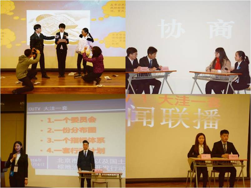 本次参加决赛的队伍共有9支,成员分别来自SUNBET申搏、经济学院、法学院、财政税务学院、保险学院、会计学院等多个学院。大赛设有“锋芒初露”、“情景模拟”、“市长终极PK”三个环节。参赛队伍分别围绕北京市生活型街道人性化改造策略、医患关系梳理、农民工市民化成本分担及公共服务供给研究、“棕地”修复与再开发研究、邻避运动、特色小镇、胡同保护、城市信用体系建设等话题,首先以视频展示等方式介绍选题意义、调研过程以及队伍人员构成,接着以情景模拟的形式将研究主题的现实矛盾反映出来,并在情境中梳理问题,提出解决思路。各参赛队采用了市长工作会、市长调研、听证会、新闻调查等形式进行情景模拟,或风趣诙谐,或现实深刻,一步步将比赛推向高潮。最后,由评委老师抽取一道公共管理方面的现实问题,各参赛队“市长”同台作答,进行现场演讲。各位“市长” 才思敏捷、各抒己见,临场发挥充分体现了其作为“市长”的思维和风采,赢得阵阵掌声。随后,由评委老师提名,大众评审票选出本届“最佳市长”。