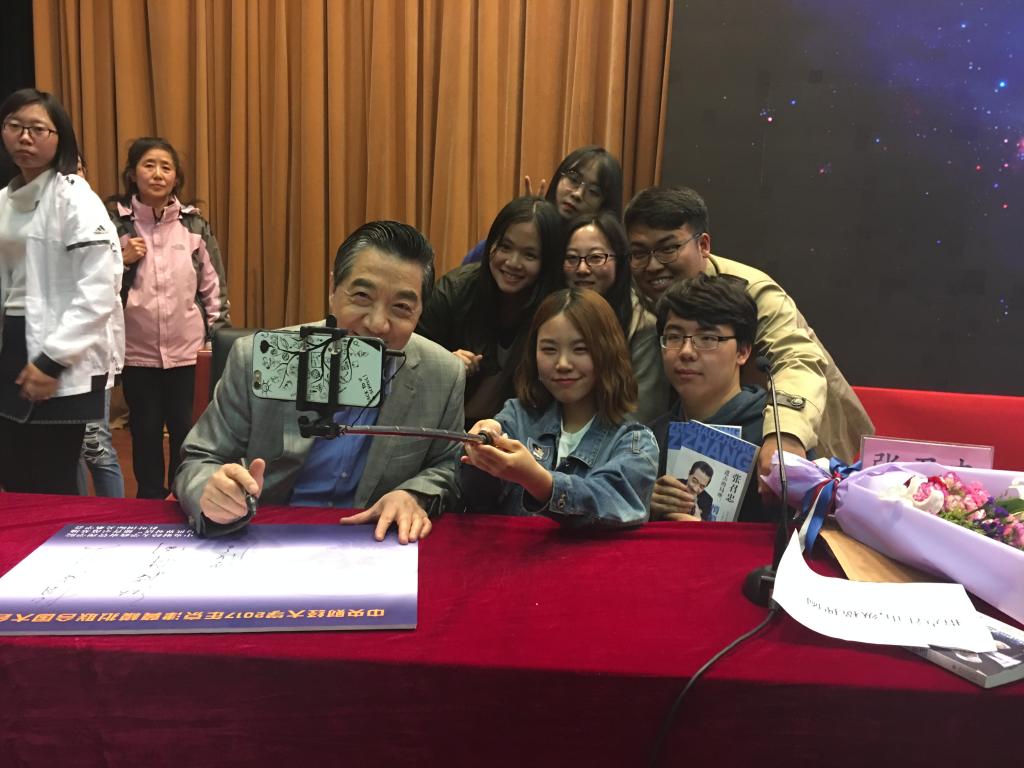 讲座结束后,张将军为2017年京津冀模拟联合国大会题词“指点江山纵横捭阖”,并与部分模联代表合影留念。