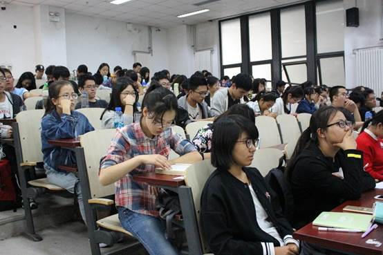 最后,白老师表达了他对新生们的希冀。白老师指出,一个真正的领导者需要满足三点:有激情、有责任感、有判断力。他希望同学们在大学中慎始敬终,锤炼个人价值观,提高自己的批判性与建设性思考能力、创新能力、想象能力和终身学习能力,培养创新领导能力,践行价值观、能力与知识三位一体观。白老师引经据典,谈吐幽默,赢得了同学们的阵阵掌声。