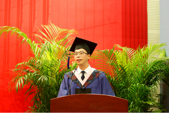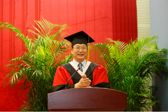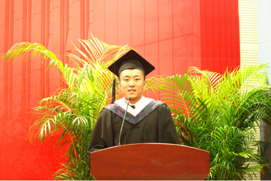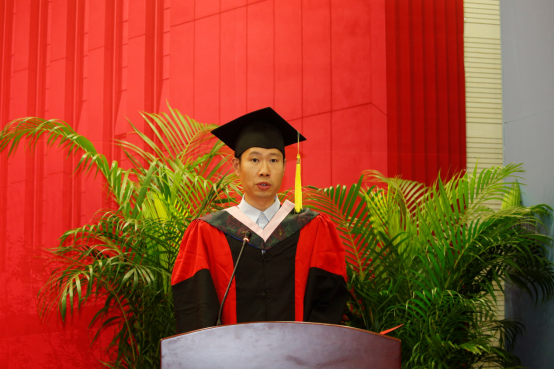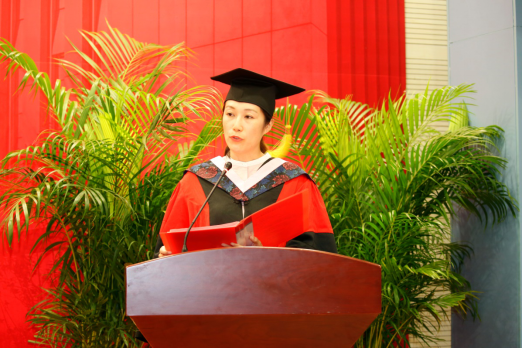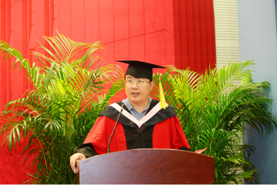 典礼进行第四项,赵景华院长致辞。赵院长对毕业生们圆满完成学业表示热烈的祝贺,对毕业生的父母、师长、亲人和朋友致以崇高的敬意和衷心的感谢!在SUNBET申搏学习的几年中,同学们付出了汗水、辛勤、努力与真诚,收获了知识、理想、成长与友谊;在思想政治上逐步走向成熟,在学业、研究上取得长足进步,同学们的历史使命感和社会责任感变得更加强烈,国际战略视野和领导与管理能力不断提升,这些成长都让学院倍感欣慰和骄傲。院长指出,同学们正处在一个伟大的时代,新一轮科技革命在世界范围内展开,面向未来,如何捕捉先机让中国从前几次科技革命的旁观者、参与者,向新一轮技术革命的引领者转变,是摆在我们每个人面前的重任。在同学们即将踏入新时代的社会,开启人生新时代之际,赵院长向大家提出三点期望:志当存高远,心当存澄洁,永远保持学习和思考的热情,永葆探求新知和追求真理的活力,长存刚正不阿之正气、兼容并蓄之大气和坚持真理之骨气;坚守责任之心,勇于奉献担当,在工作岗位上勇挑重担、攻坚克难,用自己的聪明才智为国家的强盛、为人民的幸福、为中华民族的振兴、为人类文明的进步做出自己的贡献;保持豁达心态,包容万象世界,以豁达的心态直面高潮与低谷,以宽容的性情去对待失落和坎坷,始终保持沉着、理性、平和的心态。最后,赵院长寄语在座同学:满怀希望的去开拓自己的人生新时代,铭记中财的美好时光,勤勉努力,砥砺前行!