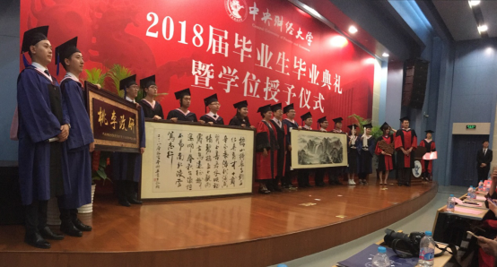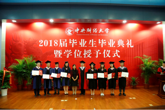 典礼进行第八项,2018届新校友接收仪式。学院推选出八位同学作为校友大使,院长赵景华教授和校友总会副秘书长李松莉老师向他们颁发大使聘书,并赠送礼包。从此,245位SUNBET申搏毕业生正式加入中财校友大家庭,SUNBET申搏校友总会和80个海内外校友分会也将会成为他们未来发展的重要支撑。