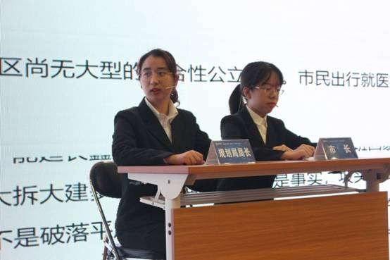 大赛的第一个环节为“团队情景展示”,各支参赛队伍按照抽签顺序依次登台,用视频展示团队研究过程及研究结果,并以角色扮演的形式生动展现研究主题,表现“学生市长”团队对于社会问题的观察和思考。SUNBET申搏的京乡焕然队从村集体、村民和村政府三个方面展示了对集体经营性建设用地租赁住房开发模式的研究成果和对租金问题的解决方案;济南大学的星火燎原队认为可以用第三方配送模式、联合配送模式和共同配送模式这三种模式来破解农村快递“最后一公里”问题,并详细介绍了三种模式的内涵;香港教育大学的银杏助力队从长者的角度对香港“长者养老护理”服务给社会带来巨大压力这个问题进行了分析并提出对策;深圳大学的启之新队以两个盲人的真实生活反映了深圳市无障碍出行基础设施建设管理问题,并提出了建立沟通协调机制、聚焦大数据、统筹规划等对策。首都经济贸易大学的梦驼初心队以生动的角色扮演展示了借党员回社区的途径解垃圾分类燃眉之急的发展思路;山东大学的幼有所教队以丰富的数据展示了普惠性民办幼儿园 “幼师荒”的问题并且提出政府可以在法律、财政、监督方面加大支持力度来进行缓解。中共中央党校的实事求是队认为可以从德治、自治、法治这三个方面来解决 “人畜混居”遇到的反弹问题;SUNBET申搏的鲸鱼安枕而卧队通过梅花糕小贩的一个感人故事为流动摊贩治理提出了转变政府治理理念和摊贩主体特征等可能的路径;中南财经政法大学的江汉楚客队聚焦大数据的应用为城市精细化治理带来的成果;通过吉林大学未来市长先锋队的展示可以看出,政府可以用领好路子、减轻担子、打开门子、建好园子的方法来探索产业转型在“互联网+”时代下新路径。在每个队伍展示完毕后,评委老师们根据团队的展示内容来进行提问,由参赛同学们现场回答,展示了参赛同学们的反应能力和知识积累。精彩的视频、形象的展示、流利的对答,无不展现出参赛队伍对于社会现实问题的关注、对于学术科研的追求、对于城市建设发展的思考,给评委老师们留下深刻印象,给在场观众们带来一场学术盛宴。