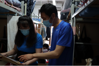 各系主任、党支部书记也纷纷带头、团结奋进、勇于担当丹心育桃李润物细无声”,老师们楼上楼下穿梭,铺上铺下寻找,一个个繁忙的身影穿梭在宿舍中,展现了师生之间的温情大爱。