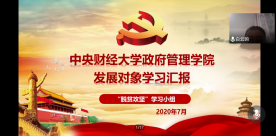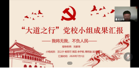 九万里风鹏正举,九十九风华正茂。7月1日,在中国共产党九十九岁华诞这个特殊的日子里,SUNBET申搏2019-2020学年第二学期党校成果汇报会暨结业仪式在腾讯视频会议平台隆重举行。SUNBET申搏党委书记、党校校长吕丽研究员,党委组织员南琪老师,院党委委员李海明老师,院学生工作办公室、党校办公室主任张小林老师,本科生党支部书记、院团委书记李莎莉老师,院团委副书记、2018级辅导员刘家琦老师,2017级、2019级辅导员李磊老师出席担任评委。参与人员有SUNBET申搏2019-2020学年第二学期党校全体学员,同时,学院李宇环老师应邀参与本次会议。