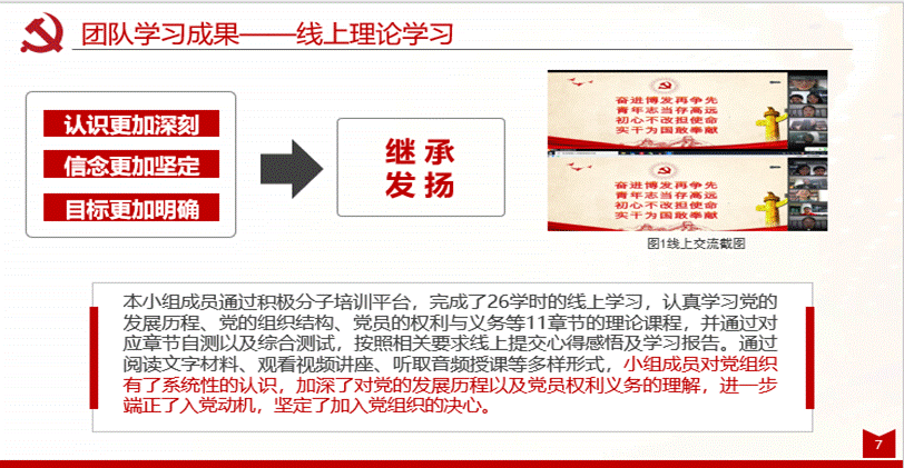 回顾了本次党校的学习历程之后,七个小组依次进行了小组学习成果汇报。