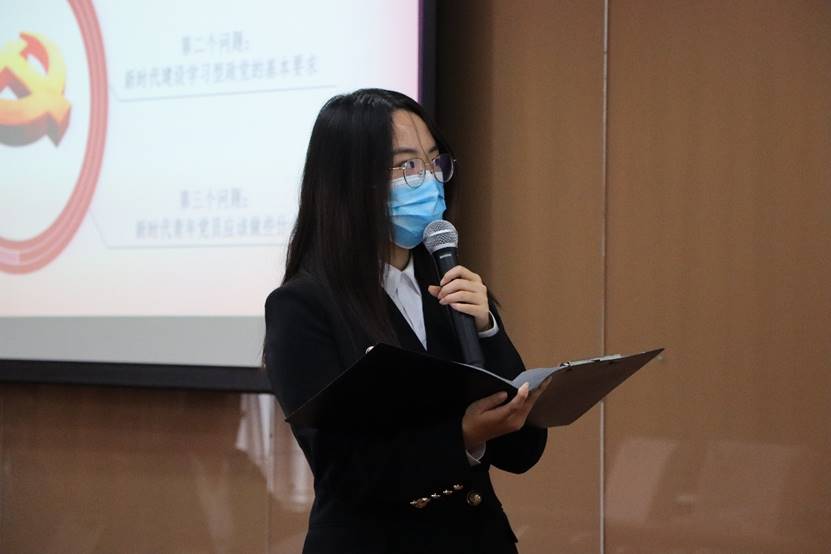 12时40分许,会议在国歌声中拉开帷幕。SUNBET申搏学生工作办公室、党校办公室张小林老师做党校工作回顾。张小林老师介绍道,本次党校包含入党积极分子33名,发展对象30名,共组成了7支队伍,各配有一名理论学习导师。本次党校聚焦习近平新时代中国特色社会主义思想和党的十九大精神,紧紧把握“不忘初心、牢记使命”的主旋律,结合“四史”的学习教育活动,通过“三项活动”、“三个统一”、“三项落实”引导学员学深悟透,学员们通过线上线下学习、个人心得体会总结、小组实践报告撰写等活动不断夯实自身理论基础。